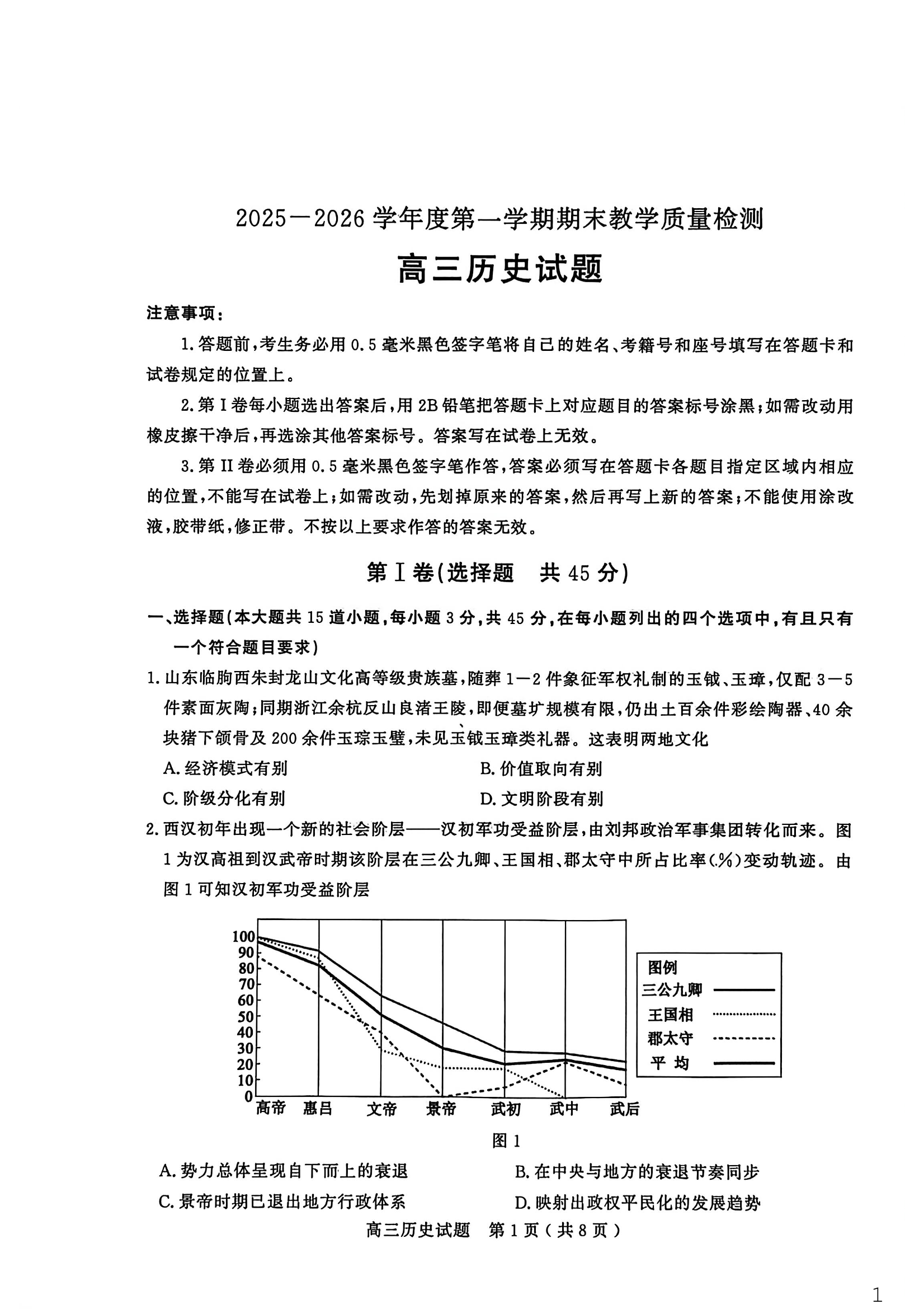 高三历史--山东省聊城市2026届高三上学期期末教学质量检测