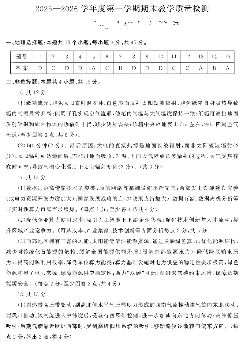 高三地理答案--山东省聊城市2026届高三上学期期末教学质量检测
