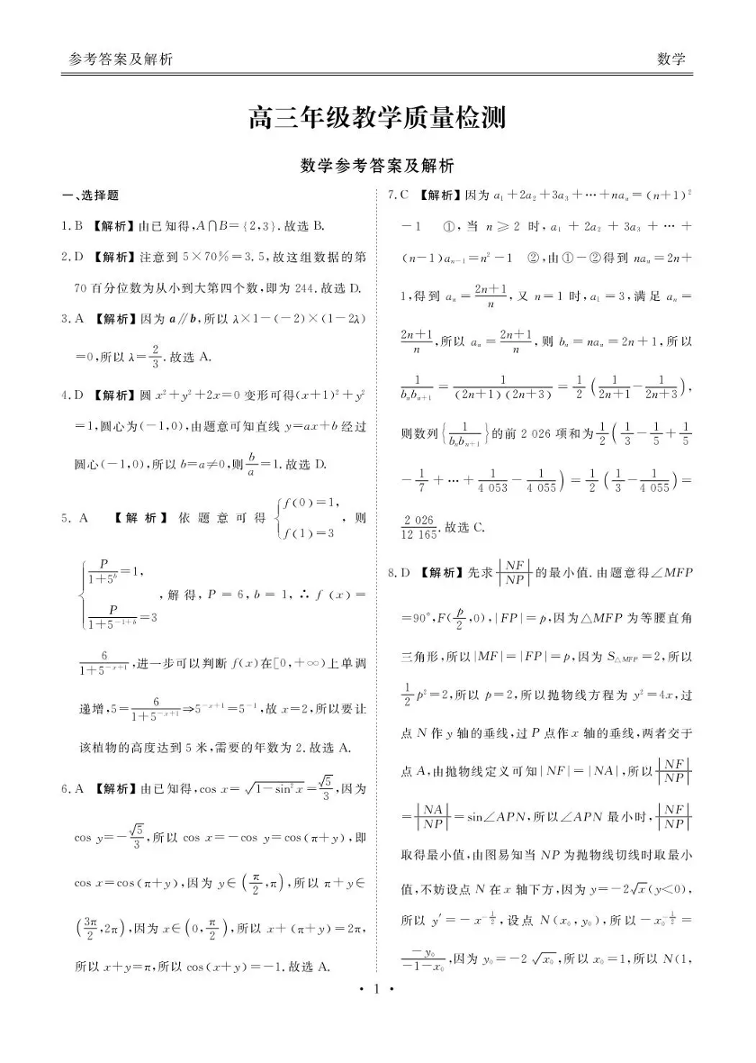 高三数学答案--陕西省衡水金卷2026届高三上学期2月联考