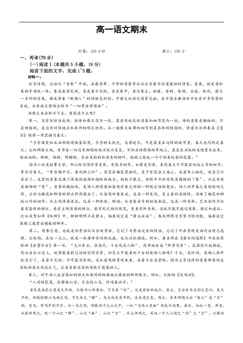 高一语文+答案--湖南省长沙市长郡中学2025-2026学年高一上学期1月期末考试