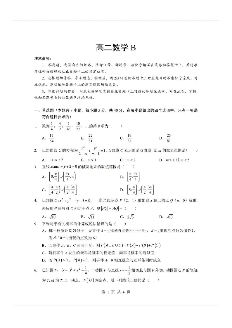 高二数学(B卷)+答案--湖北省孝感市楚天协作体2025-2026学年度上学期高二年级期末考试