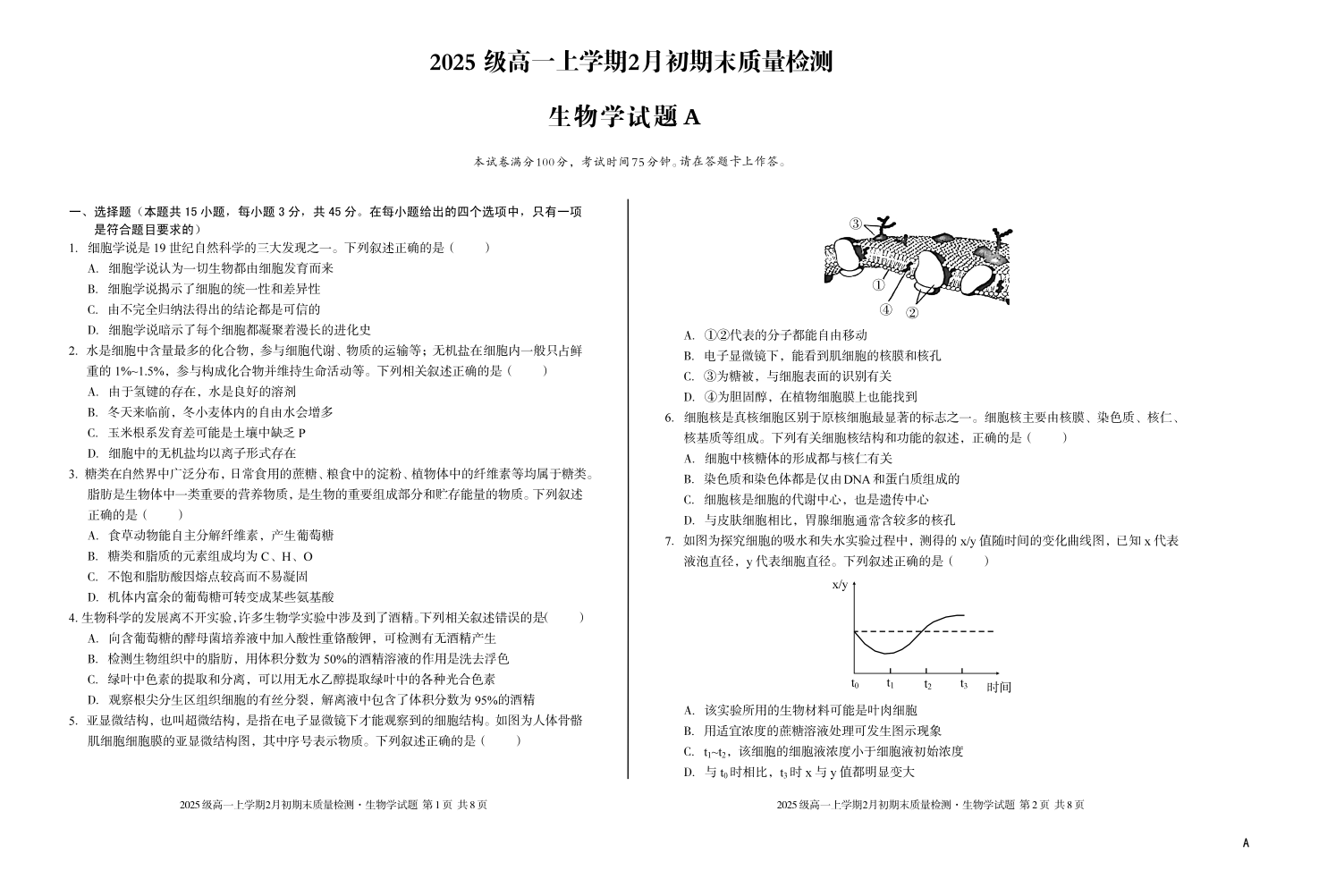 高一生物A--安徽省A10联盟2025-2026学年高一上学期2月初期末质量检测