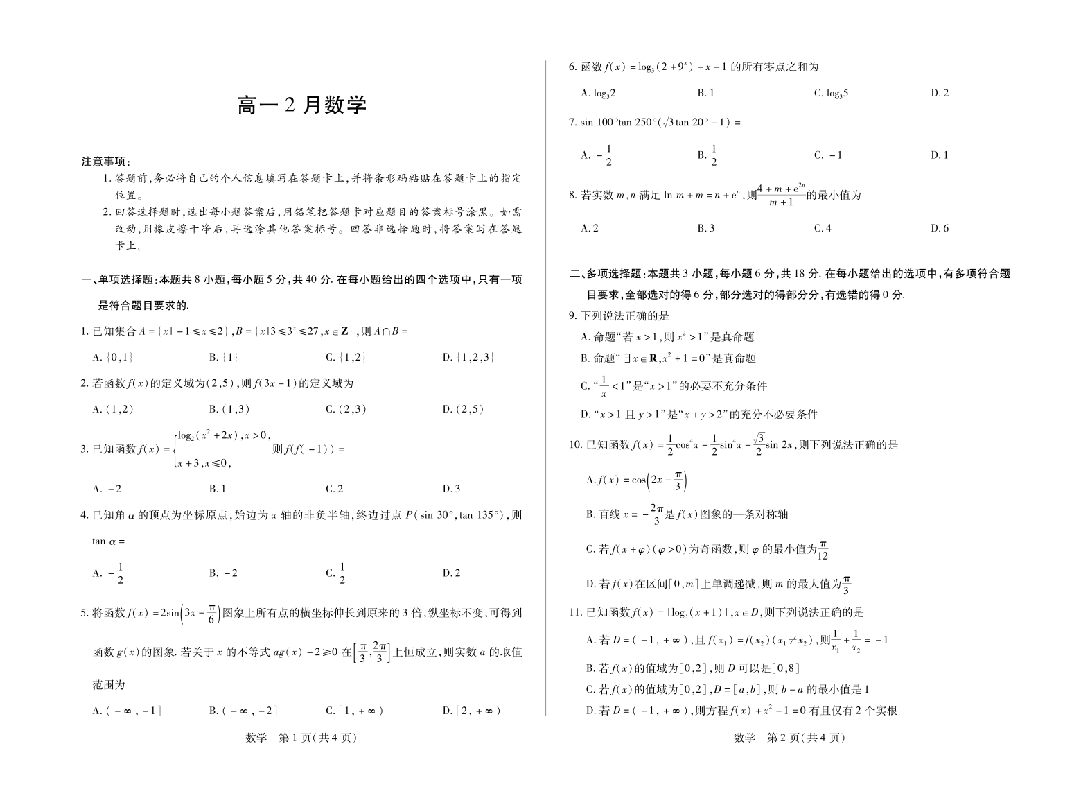 高一数学--安徽省合肥六中等学校2025-2026学年高一上学期2月期末考试
