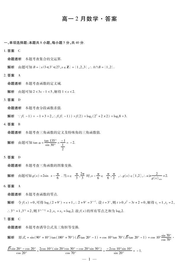 高一数学答案--安徽省合肥六中等学校2025-2026学年高一上学期2月期末考试