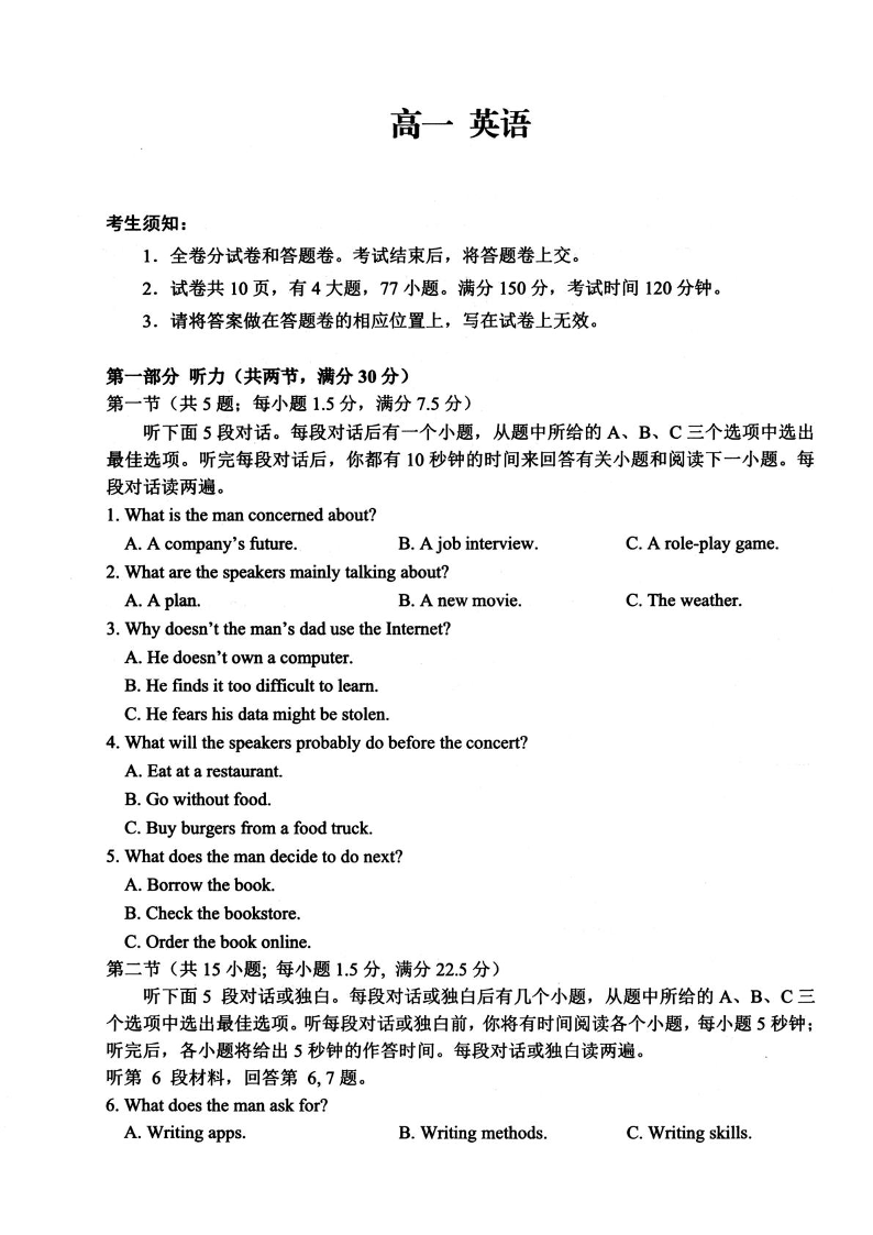 高一英语+答案--浙江衢州市2025-2026学年高一上学期2月期末