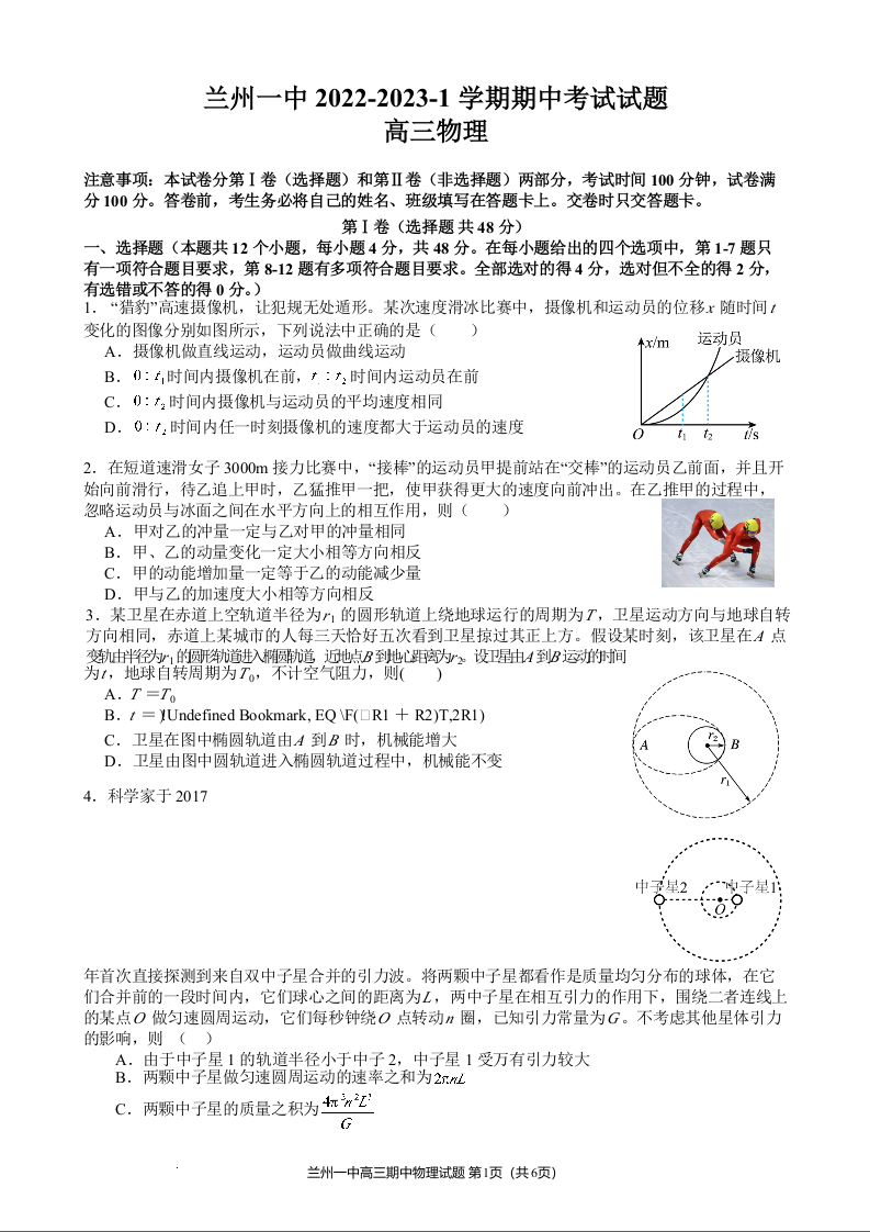 高三物理--甘肃省兰州第一中学高三上学期期中考试