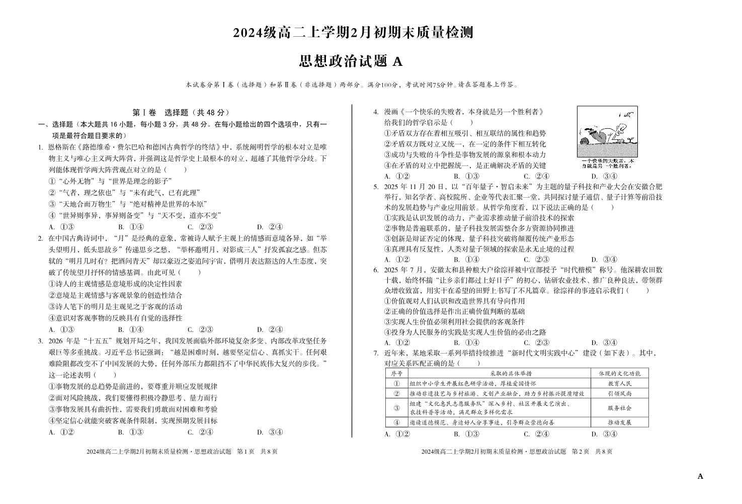 高二政治A--安徽省A10联盟2025-2026学年高二上学期2月初期末质量检测