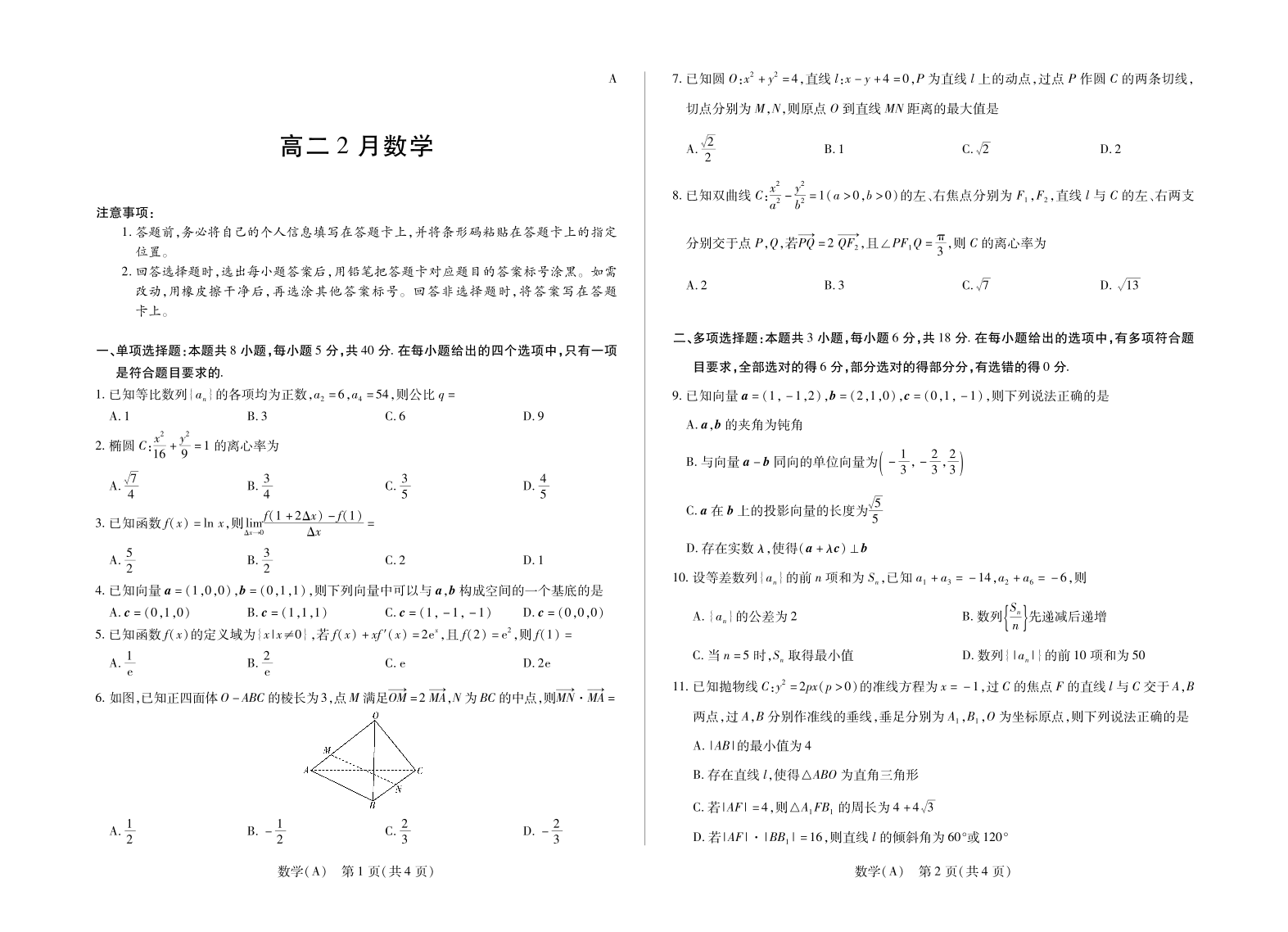 高二数学--安徽省合肥六中等学校2025-2026学年高二上学期2月期末考试