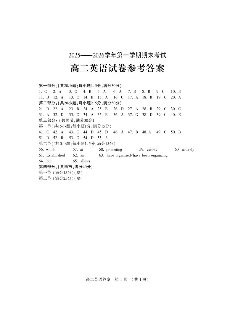 高二英语答案--河南省洛阳市2025-2026学年高二上学期2月期末考试
