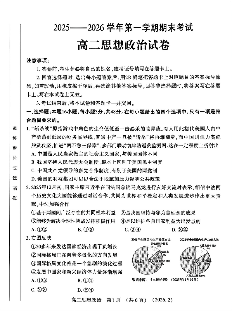 高二政治--河南省洛阳市2025-2026学年高二上学期2月期末考试