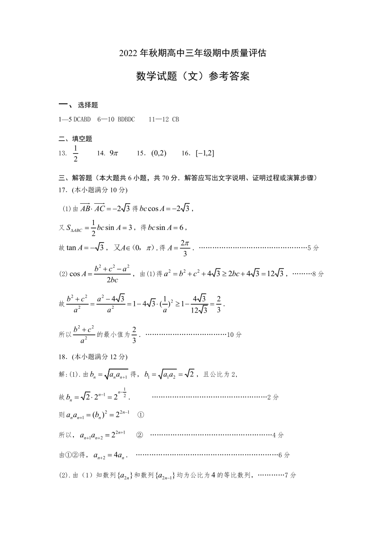 高三文数答案--河南省南阳市2022-2023学年高三上学期11月期中