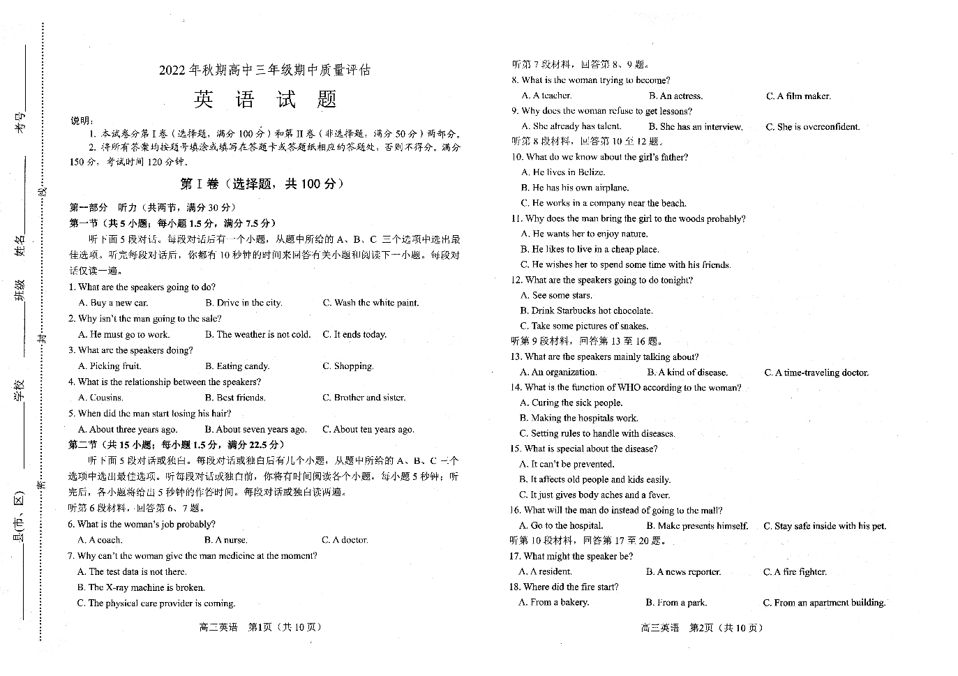 高三英语--河南省南阳市2022-2023学年高三上学期11月期中