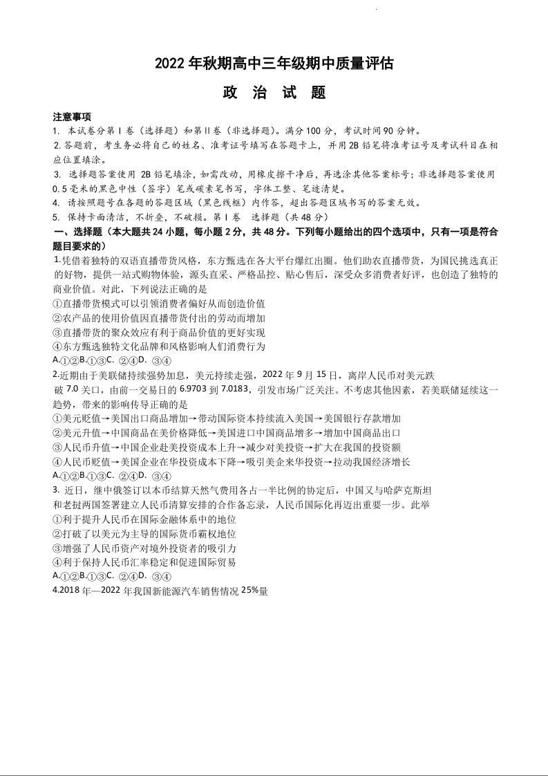 高三政治+答案--河南省南阳市2022-2023学年高三上学期11月期中