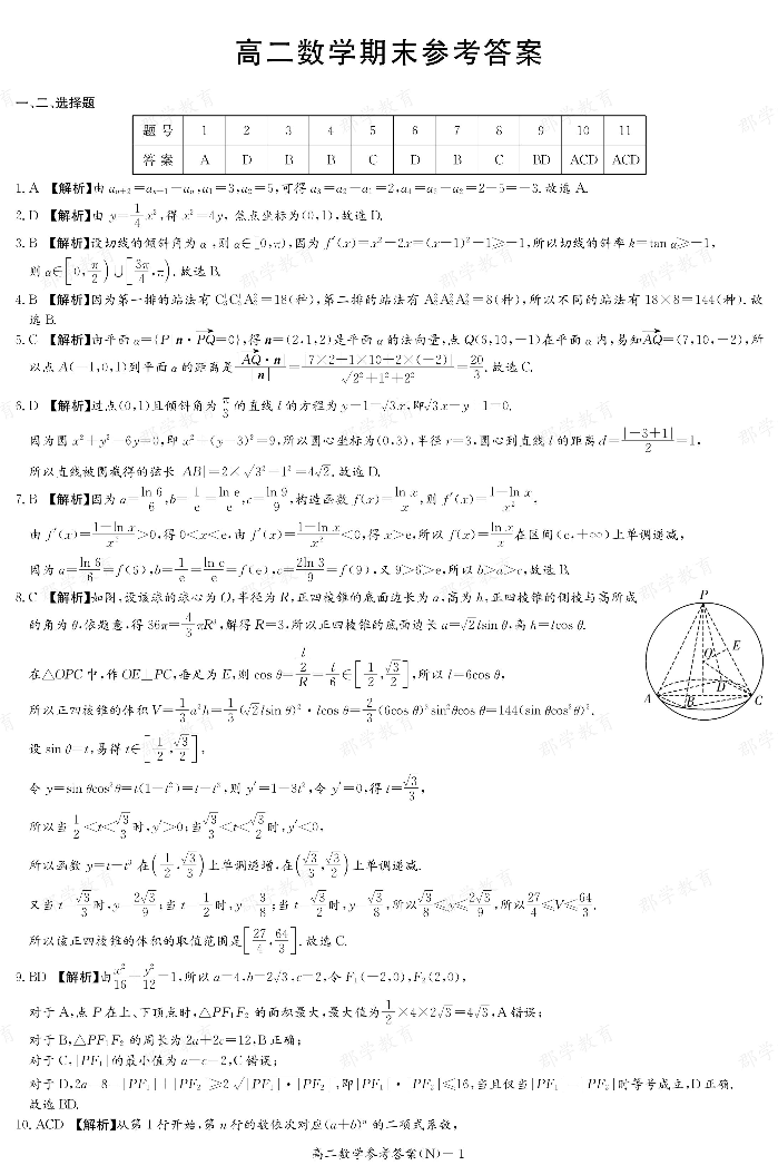 高二数学答案--湖南省长郡中学2025-2026高二上学期期末考试