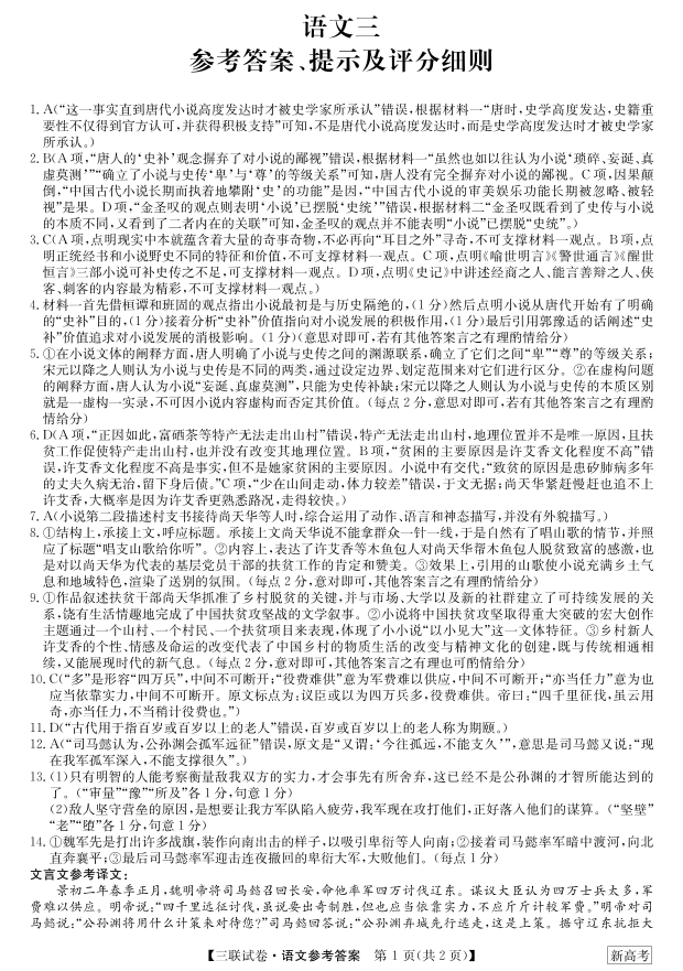 高三语文答案--黑龙江省齐齐哈尔市高三上学期11月第三次联考