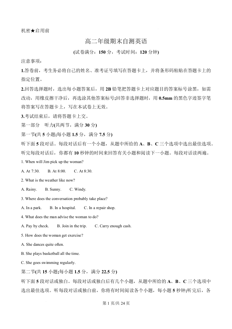 高二英语(解析版)--山西省晋城市2025-2026学年高二上学期2月期末自测
