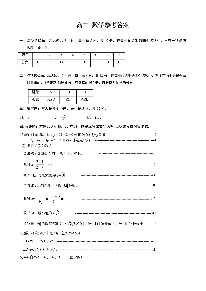 高二数学答案--浙江衢州市2025-2026学年高二上学期2月期末考试