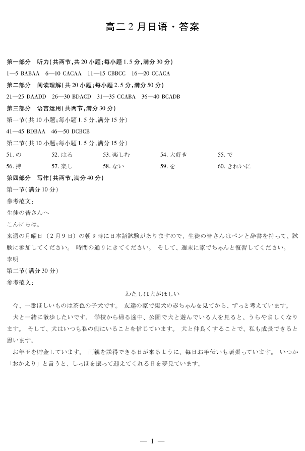 高二日语答案--安徽省合肥六中等学校2025-2026学年高二上学期2月期末考试