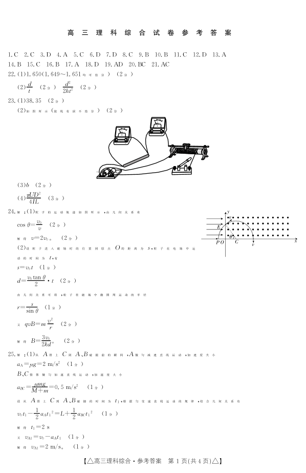 高三理科综合答案--青海省海东市2023届高三上学期12月第一次模拟