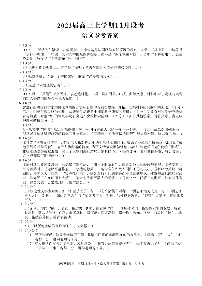 高三语文答案--江西省A10联盟高三上学期11月段考