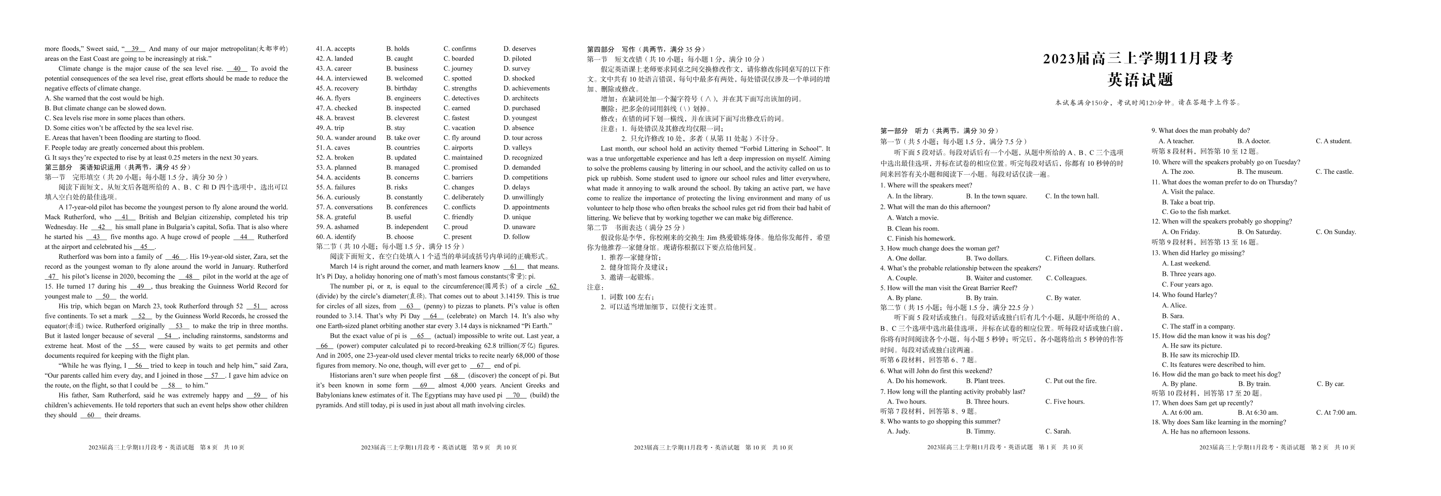 高三英语--江西省A10联盟高三上学期11月段考