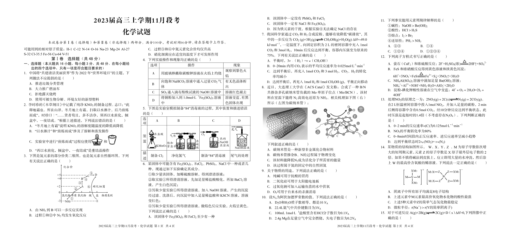 高三化学--江西省A10联盟高三上学期11月段考