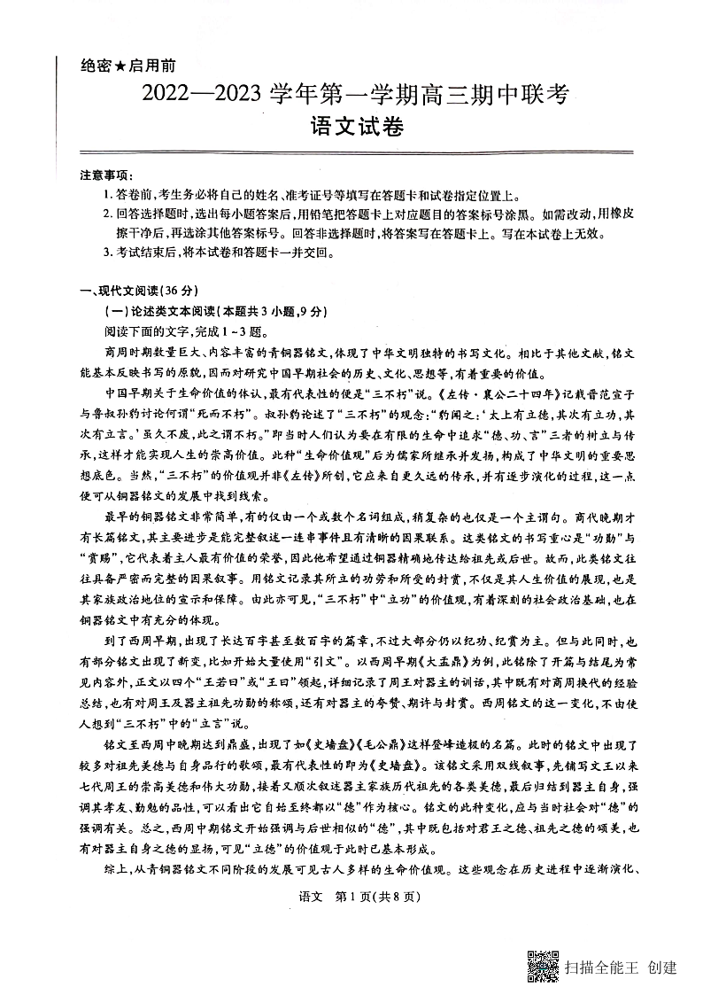 高三语文--江西省稳派教育高三上学期11月期中
