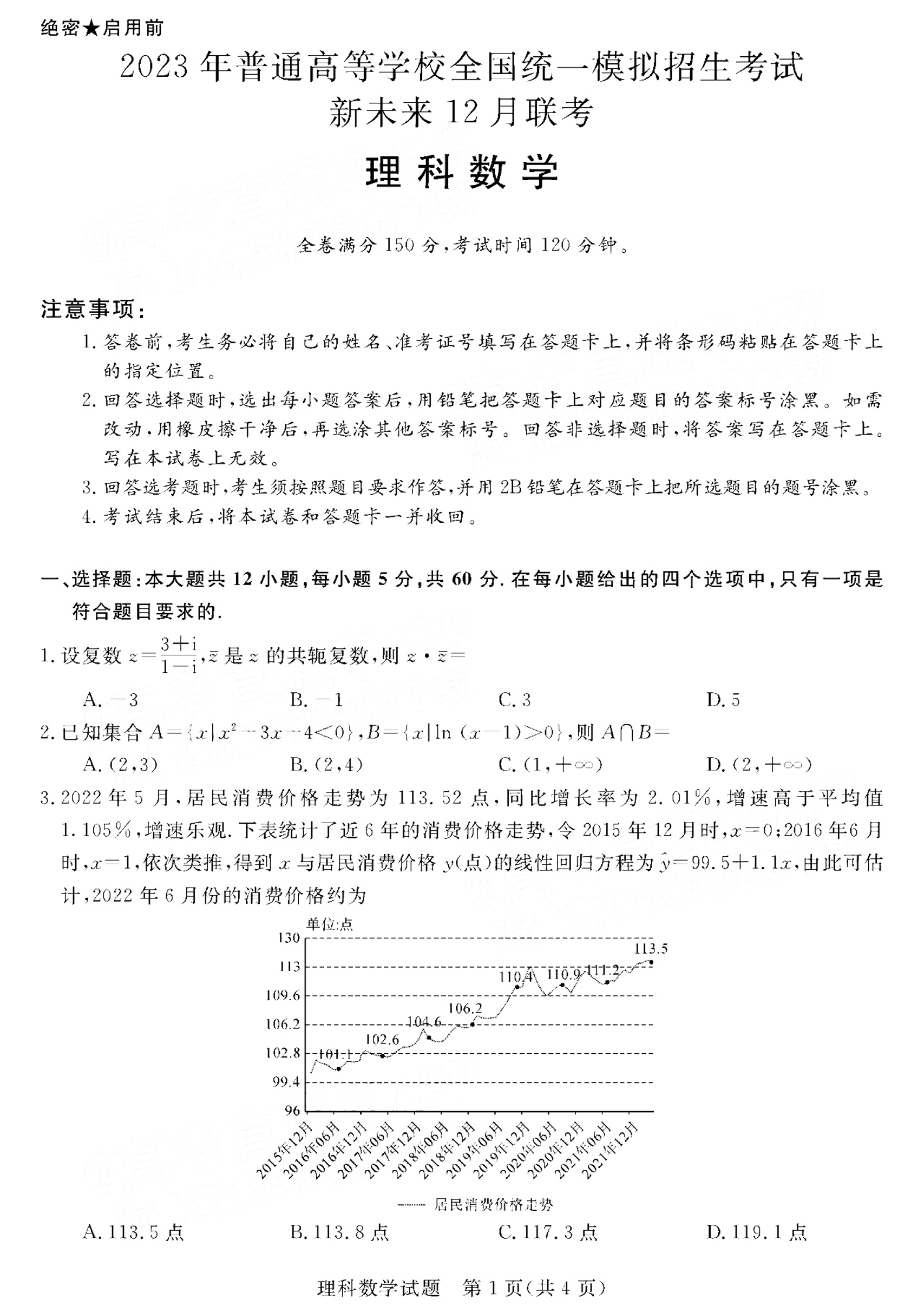 高三理科数学--河南省新未来联盟2023高三上学期12月联考