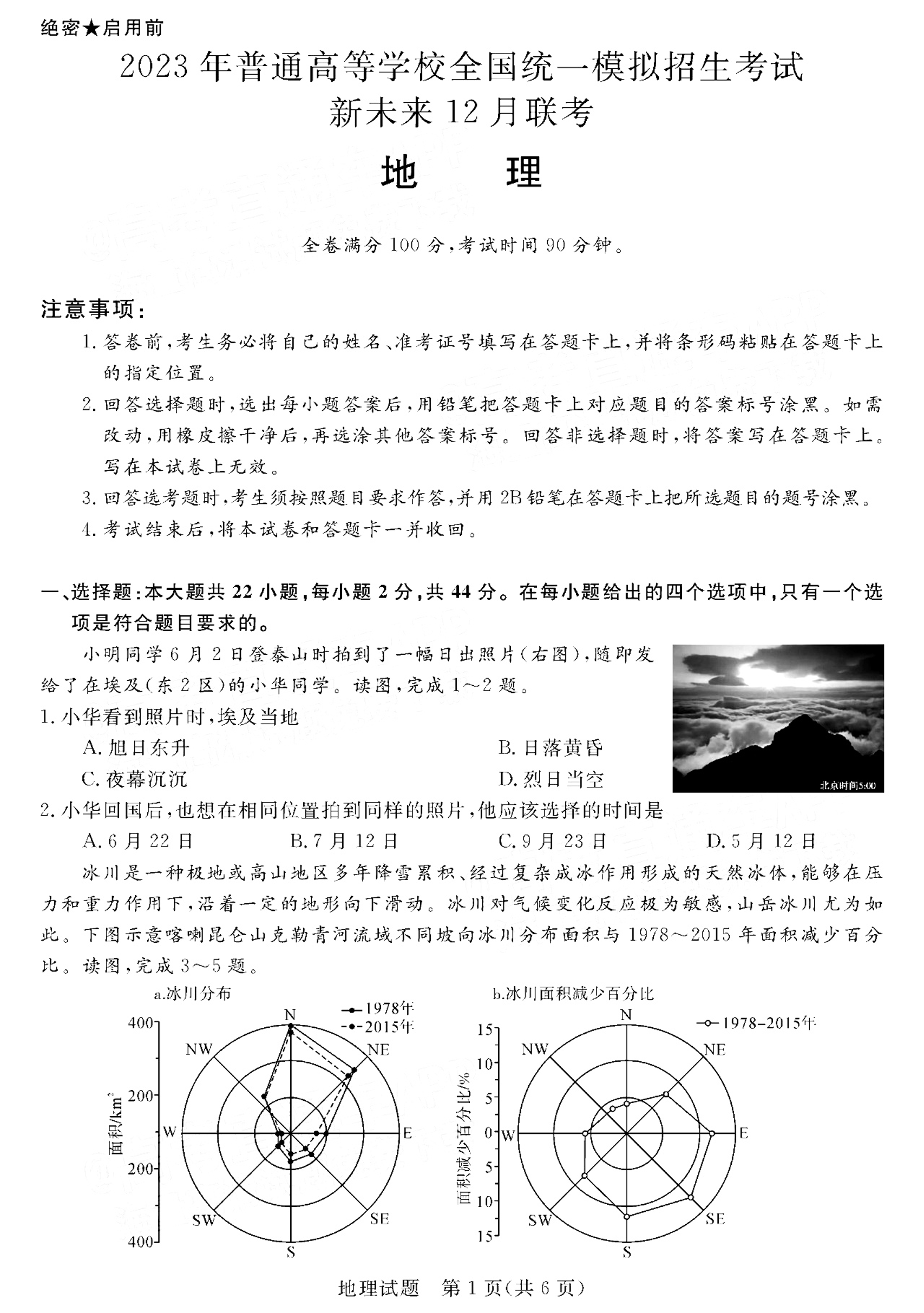 高三地理+答案--河南省新未来联盟2023高三上学期12月联考