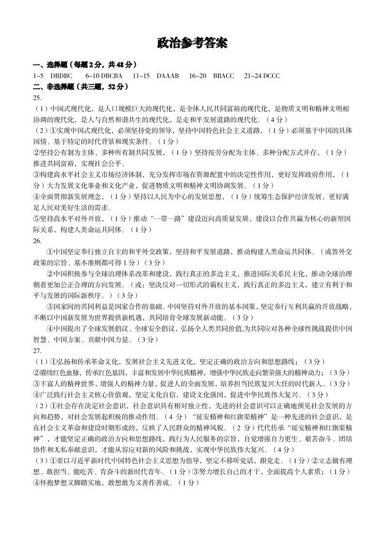高三政治答案--河南省开封市2023高三上学期一模考试