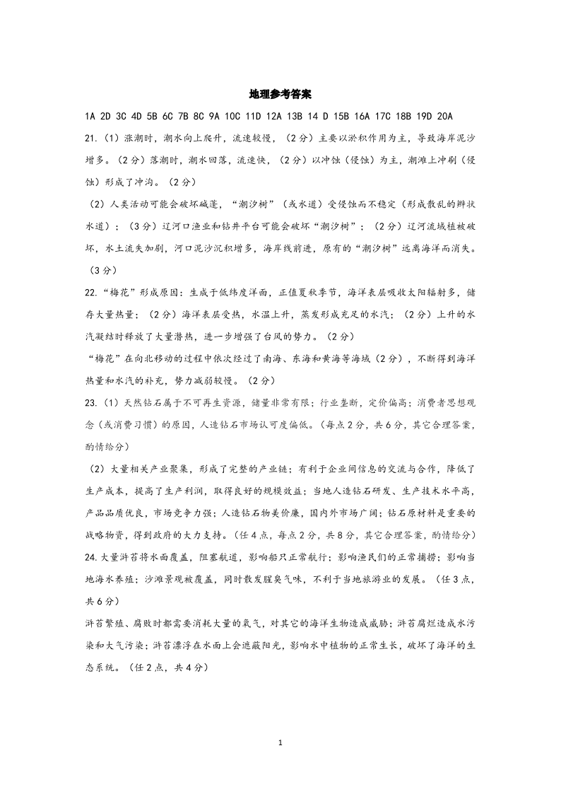 高三地理答案--河南省开封市2023高三上学期一模考试