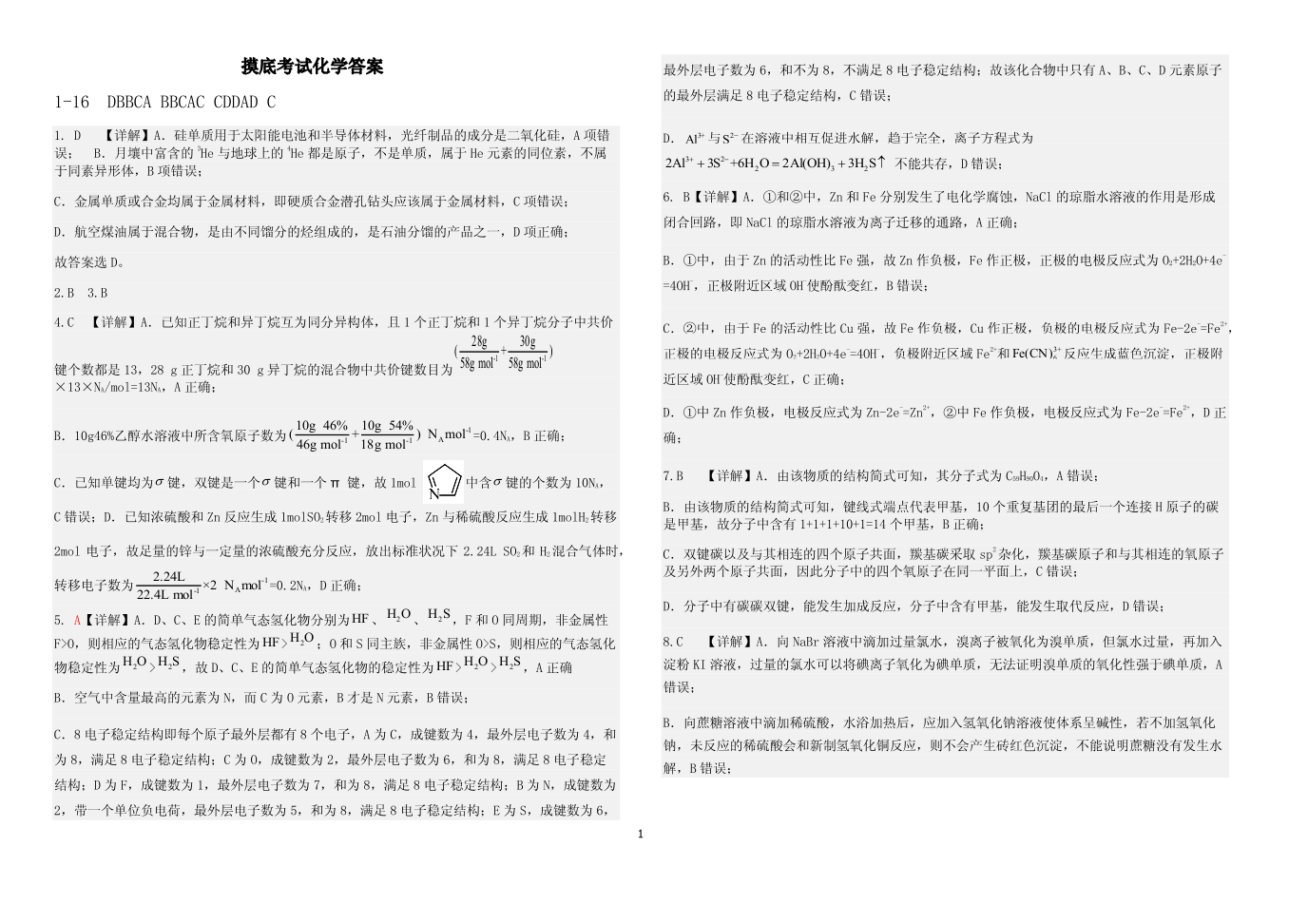 高三化学答案--河南省顶级名校2023高三上学期12月摸底考试
