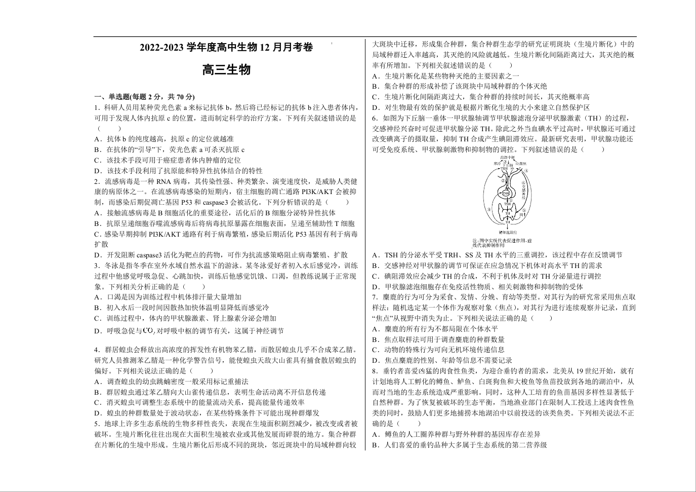 高三生物--河南省顶级名校2023高三上学期12月摸底考试