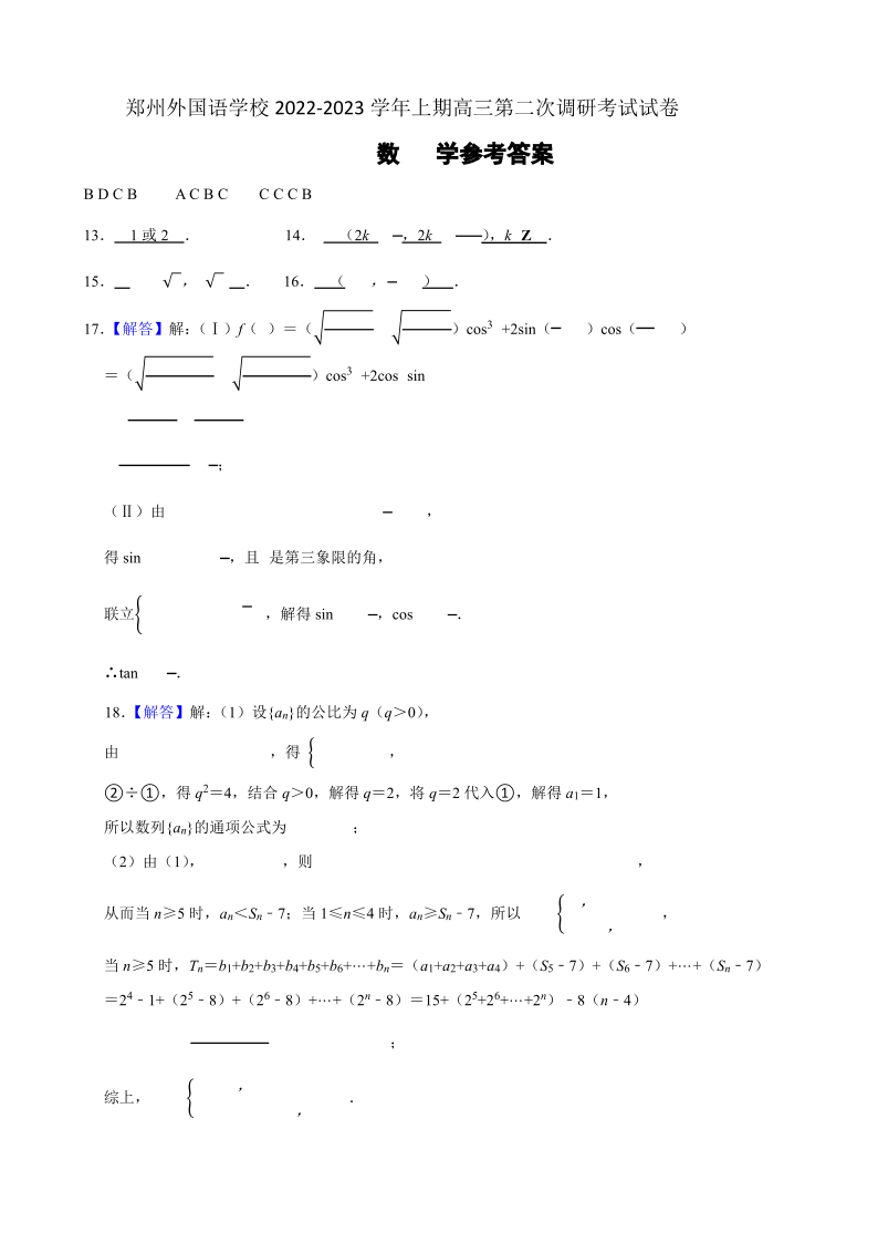 高三数学答案--河南省郑州市外国语学校2022-2023学年高三上学期12月月考