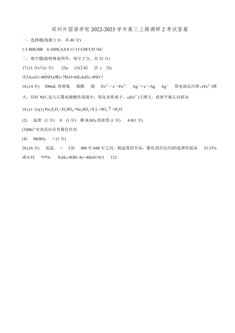 高三化学答案--河南省郑州市外国语学校2022-2023学年高三上学期12月月考