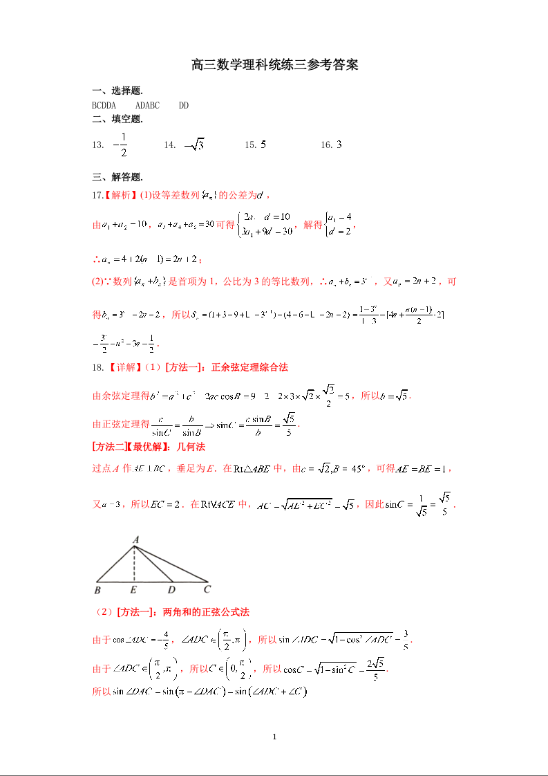 高三理数答案--宁夏银川市第二中学高三上学期统练三