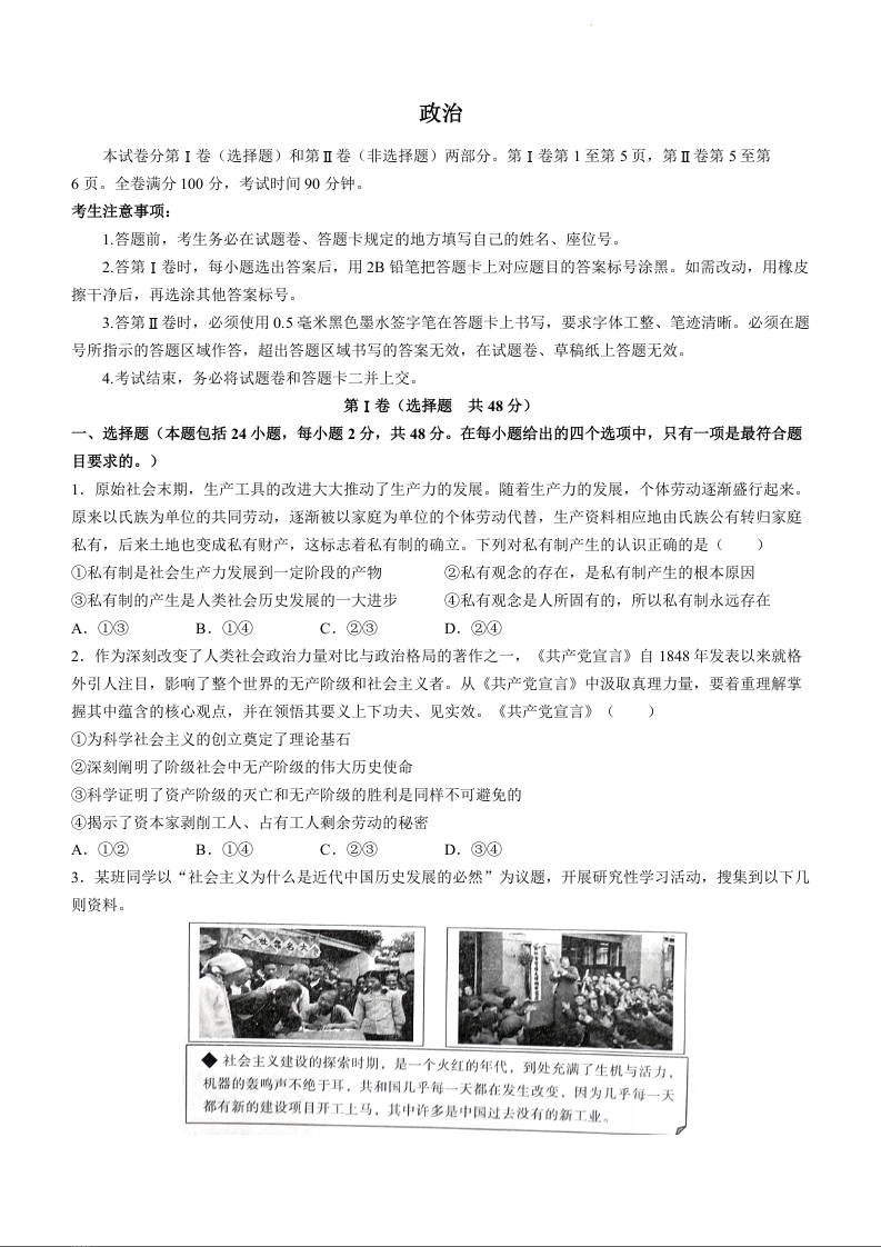 高三政治+答案--安徽省皖江名校联盟2023高三上学期12月第四次联考