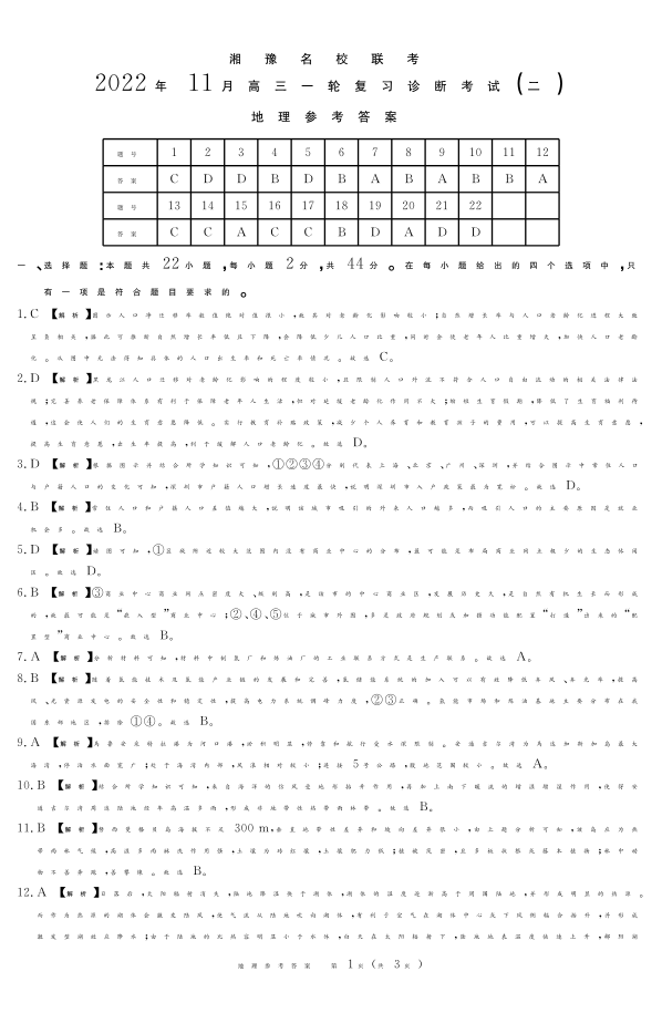 高三地理答案--湘豫名校联考高三上学期11月一轮复习诊断考试(二)