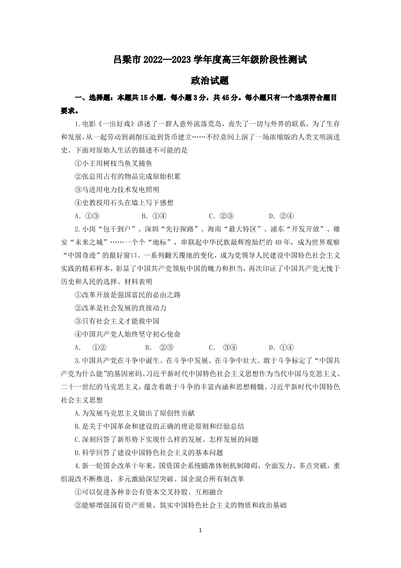 高三政治+答案--山西省吕梁市2022-2023学年高三11月阶段性测试
