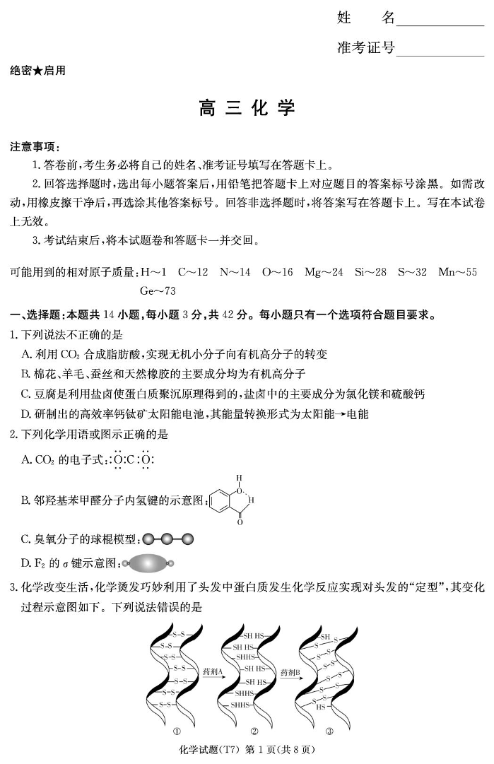 高三化学--湖南师大附中2026届高三2月月考试卷(七)
