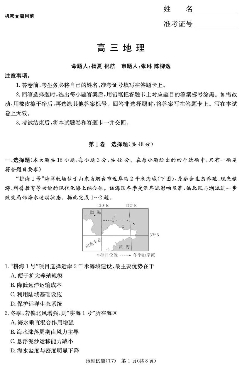 高三地理--湖南师大附中2026届高三2月月考试卷(七)