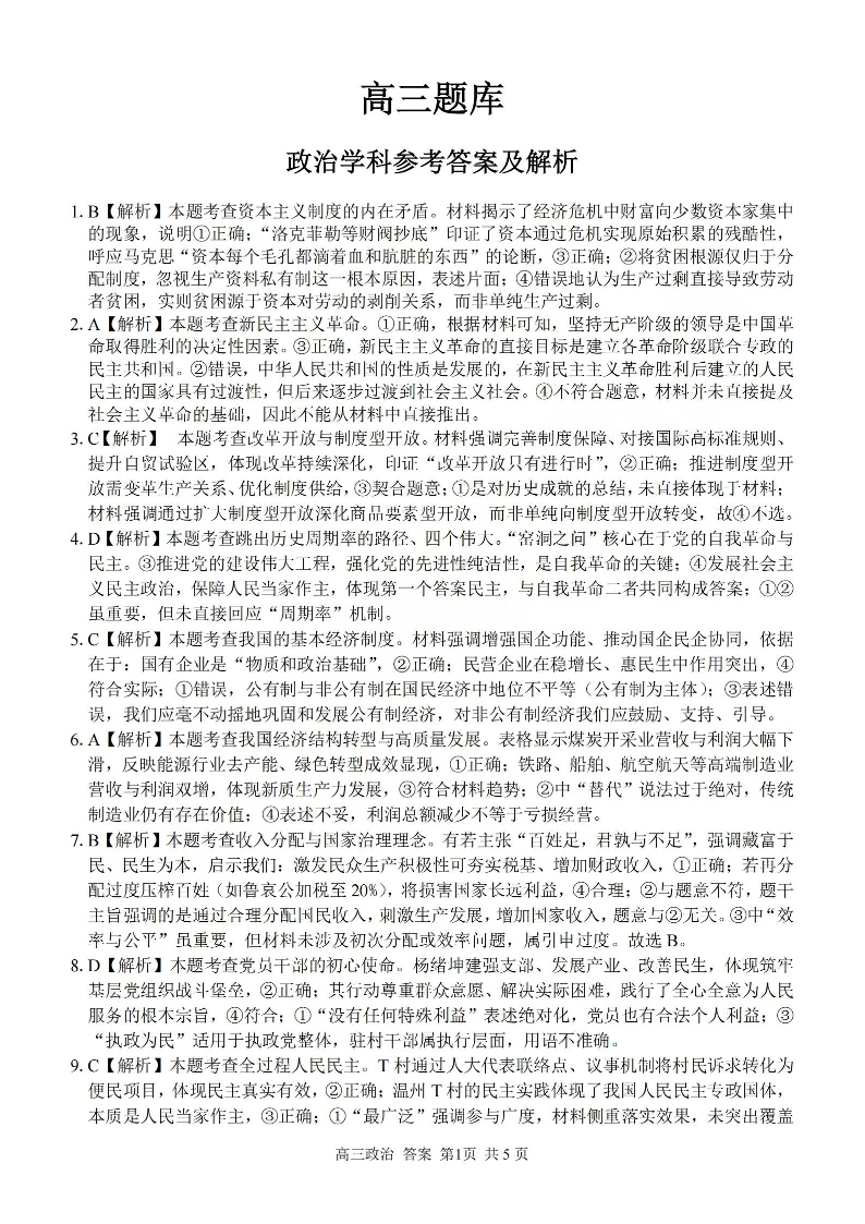 高三政治答案--浙江省2026届高三2月返校考七彩阳光、浙南名校、精诚联盟、金兰教育