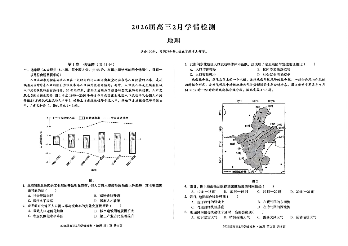 高三地理--安徽省A10联盟2026届高三2月开年考