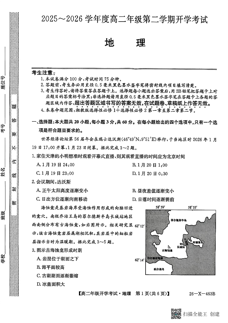 高二地理--黑龙江省龙东十校联盟2025-2026学年高二开学考试