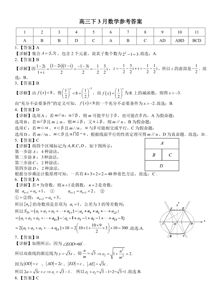 高三数学答案--重庆市西南大学附属中学2026届高三下学期3月入学考试