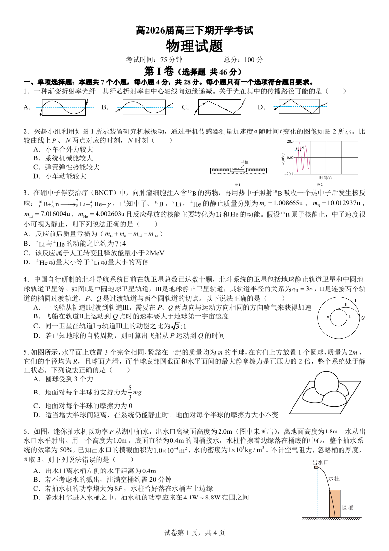 高三物理--四川省成都市第七中学2026届高三下期高开学考试