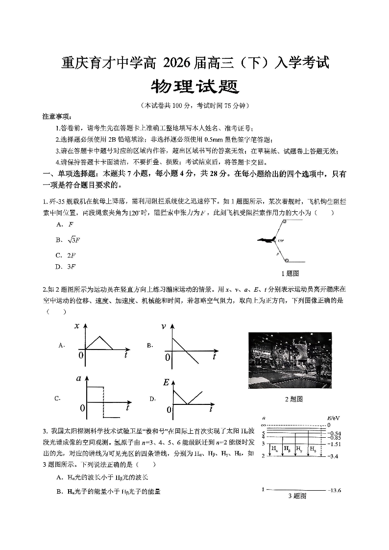 高三物理--重庆市育才中学2026届高三下学期入学考试
