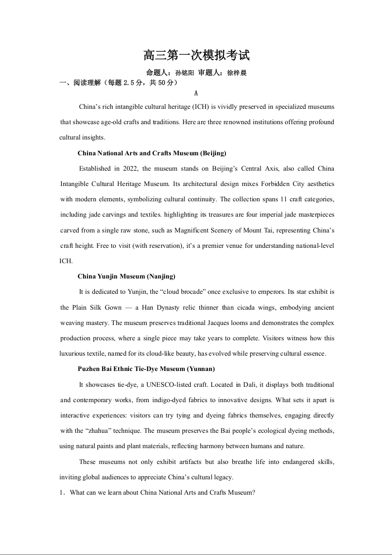 高三英语+答案--江苏南京市六合区名校联盟2026届高三下学期第一次模拟考试