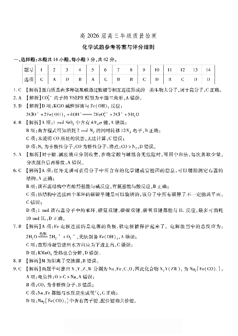 高三化学答案--重庆市南开中学2026届高三第六次质量检测