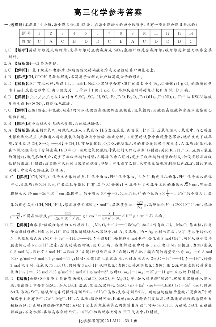 高三化学答案--湖南省新高考教学教研联盟(长郡二十校联盟)2026届高三下学期3月联考